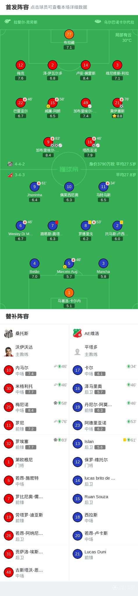 北京时间2月16日巴西圣保罗州锦标赛 第一阶段 第8轮,桑托斯对阵AE维洛。桑托斯加布里埃尔-巴博萨梅开二度,莫伊塞斯破门,塔西亚诺破门,梅尼诺破门,罗埃塞破门。最终比分桑托斯 6-0 AE维洛。