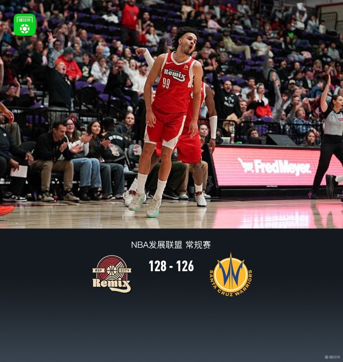 半场撕裂之城混音63-51圣克鲁斯勇士,最终撕裂之城混音128-126圣克鲁斯勇士。